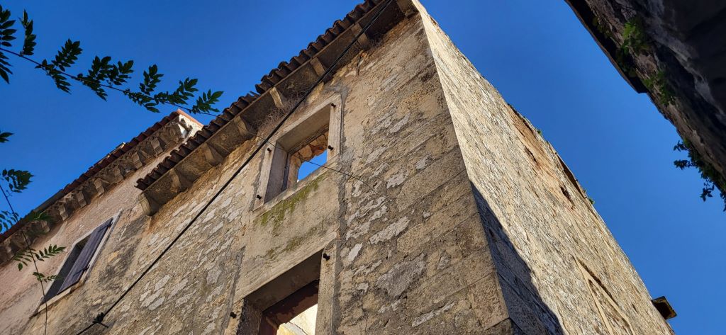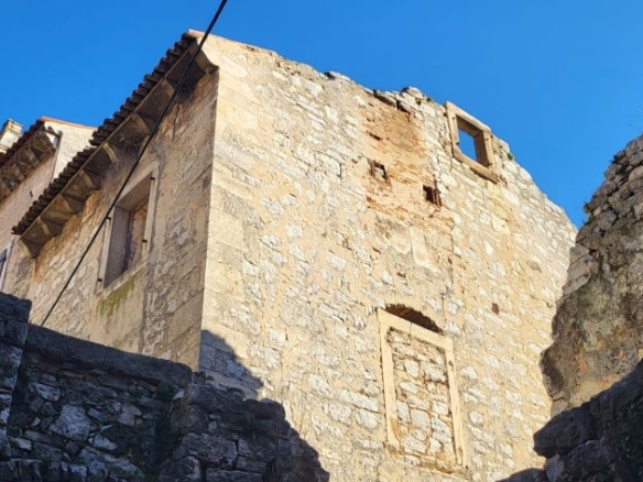 Hier steht entlang den Gassen ein altes Steinhaus – mit einer Grundfäche von 50m2. Innen ist es komplett leer, sind noch Steine und manch andere Relikte zu finden vom Zusammenbruch des Hauses – es stehen nur die Aussenmauern und ein Teil vom Dach. Das Haus ist auch nur zu Fuss erreichbar über die gepflasterten Gassen der Altstadt, also einen Parkplatz unmittelbar anbei gibt es hier nicht.