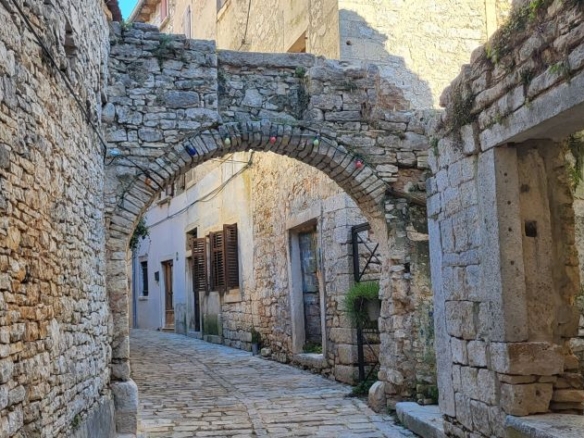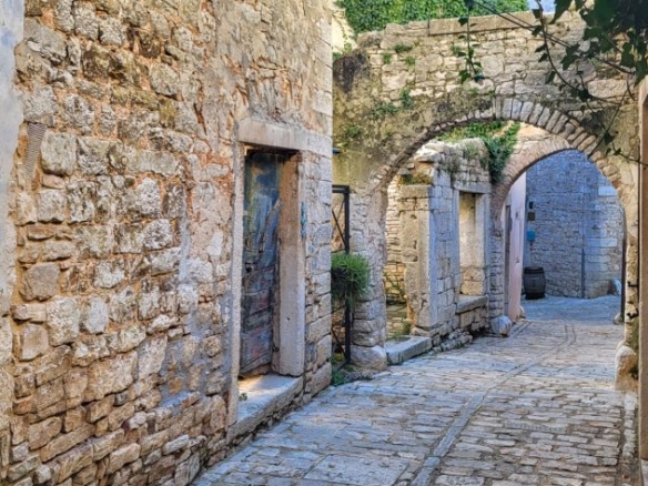 Immer noch ein Geheimtipp in Istrien ist der Ort Bale, ein wahrer Kleinod eines mittelalterlichen Ortskerns der einer alten Festung gleicht, unweit von Rovinj. Mitten im Zentrum der Altstadt, unweit vom Palazzo Bembo und gleich beim Künstlercafe „Kamene Priče“: