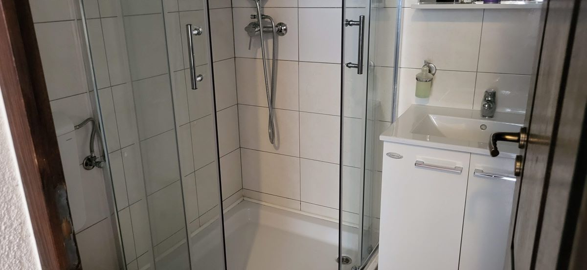 Zu jedem Apartment gibt es einen eigenen Parkplatz. Und die Apartments sind bestens möbliert, beste Keramik, Klimaanlagen – das Apartment im zweiten Stock hat auch Fussbodenheizung. Es wurde vor 10 Jahren alles eingerichtet und gestaltet.