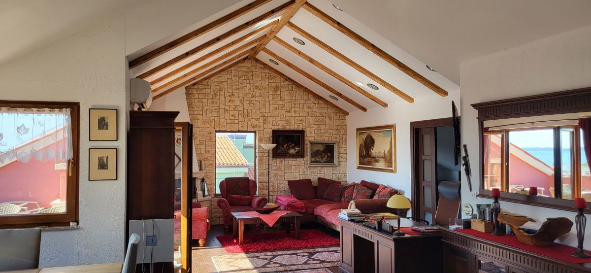 Absolute Luxuswohnung – man kann es praktisch auch als zwei unabhängige Wohneinheiten nutzen! Ein Penthouse der Luxusklasse mit über 300m2. Mit perfektem Interieur, mit perfekter Ausstattung bis hin zum privaten Whirlpool. Innenarchitektur nach Mass. Und absolut MEGA: ein herausragender Meerblick und auf die Inselwelt von Brijuni – von Pula bis fast nach Rovinj.