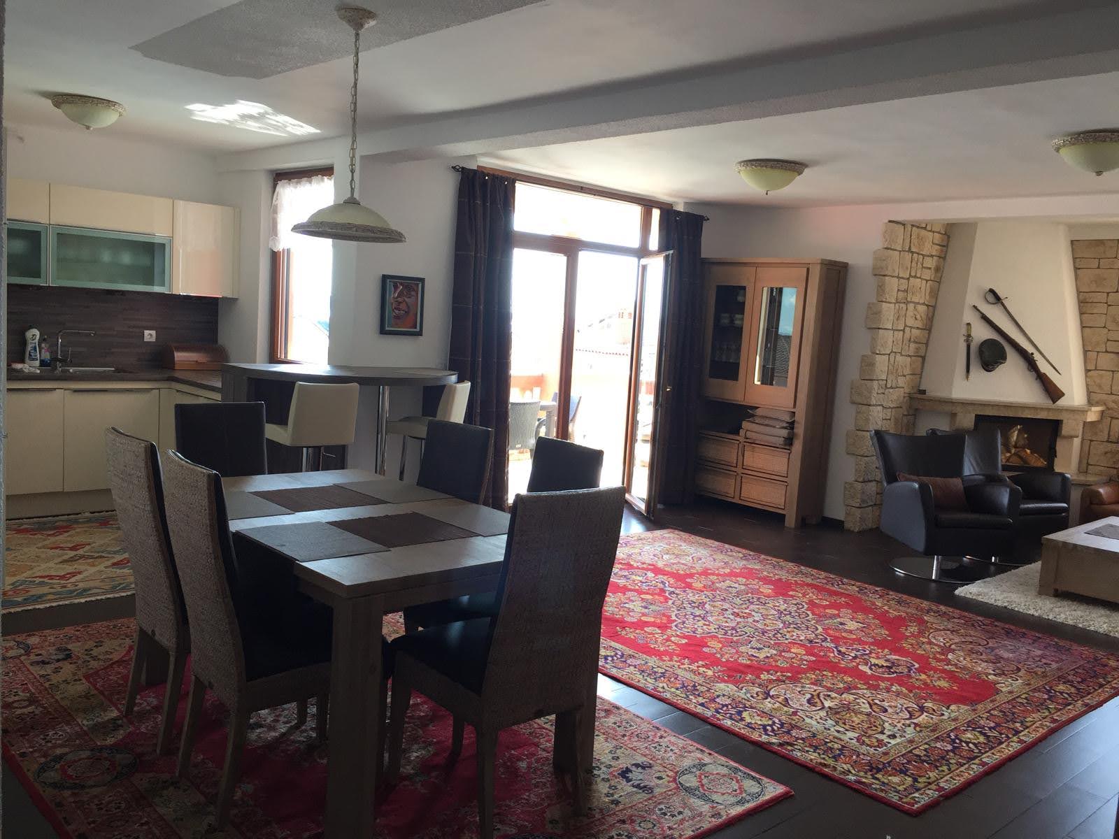 - Apartment ca.138m2 der Luxusklasse mit 2 Schlafzimmer, Küche, Wohnzimmer, Bad, mehrere grosse Terrassen mit Meerblick, offener Kamin, Grillkamin aussen auf der Terrasse. Luxusausstattung und Luxusmöblierung, beste Haushaltselektronik.