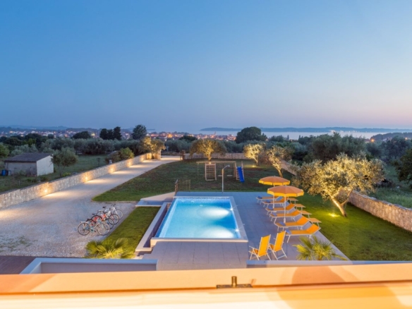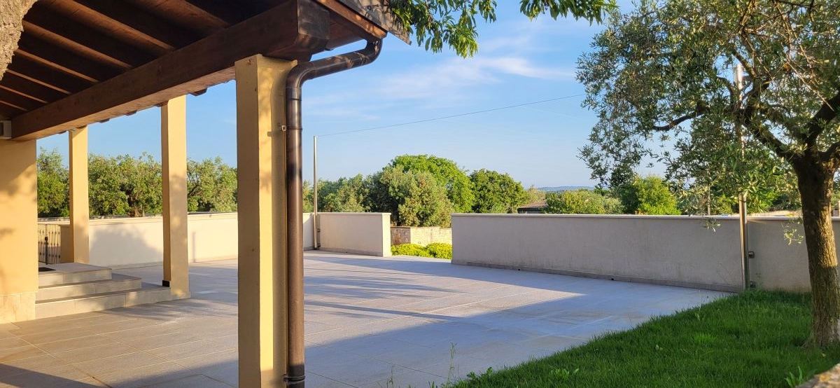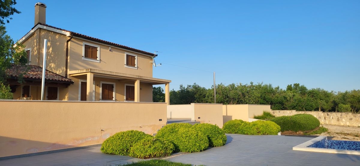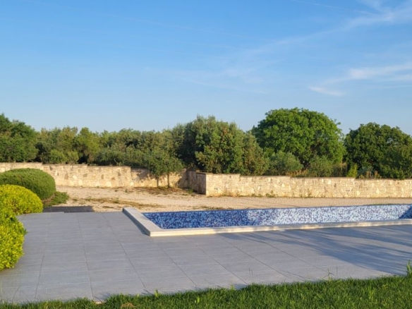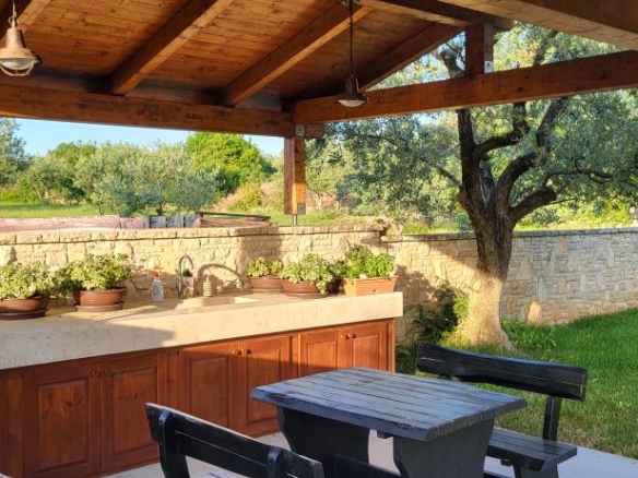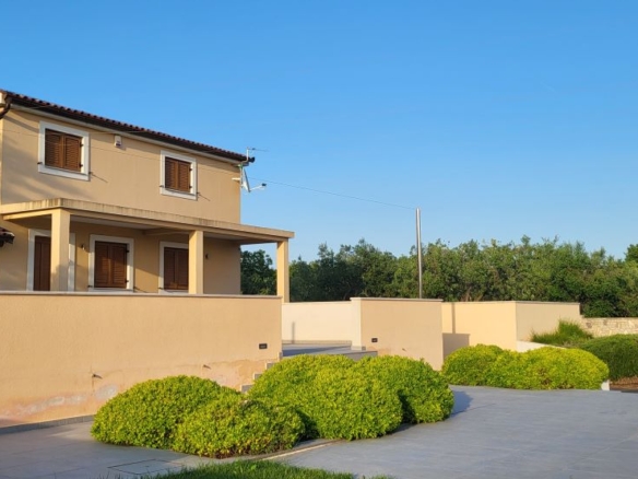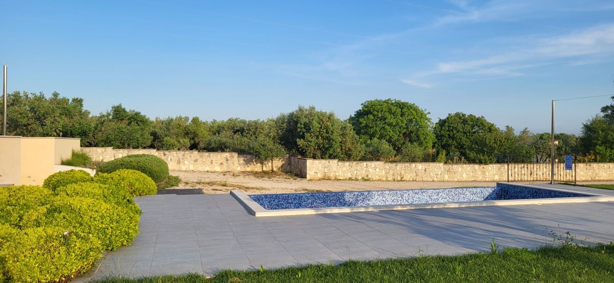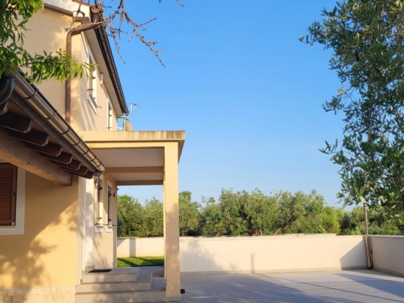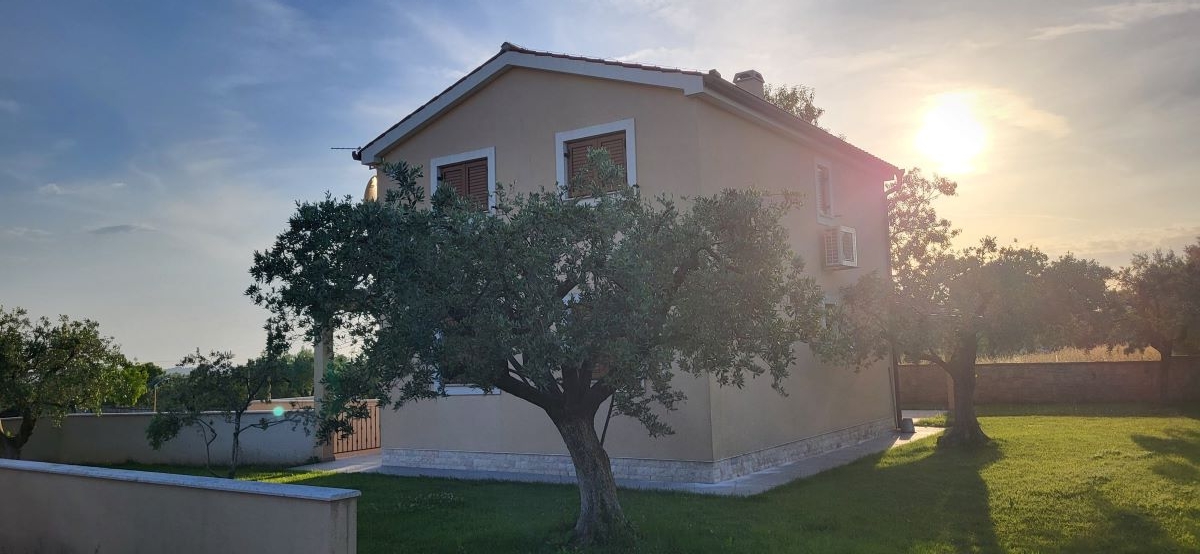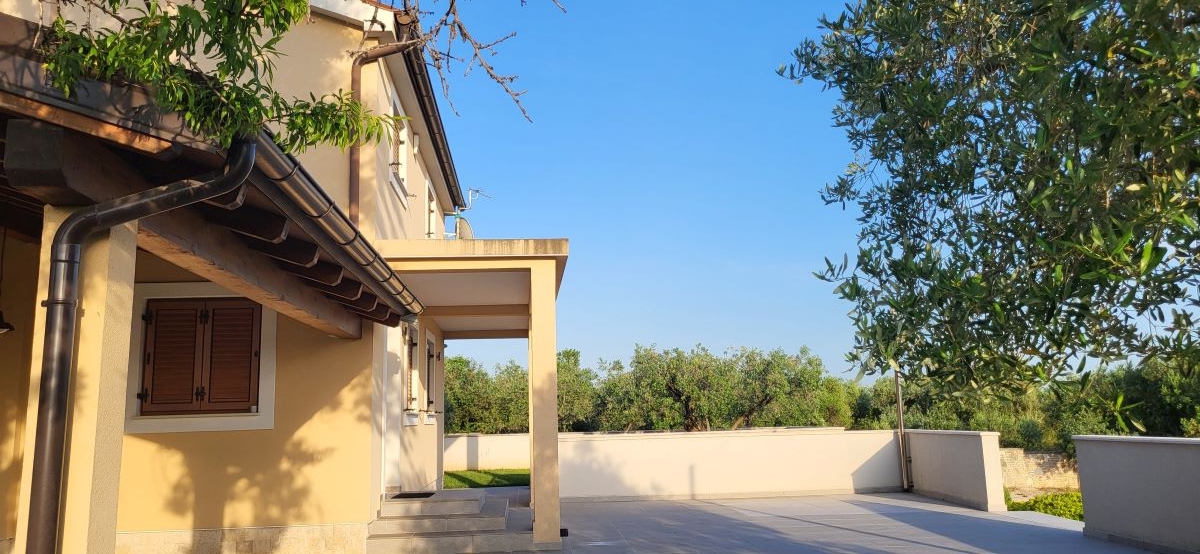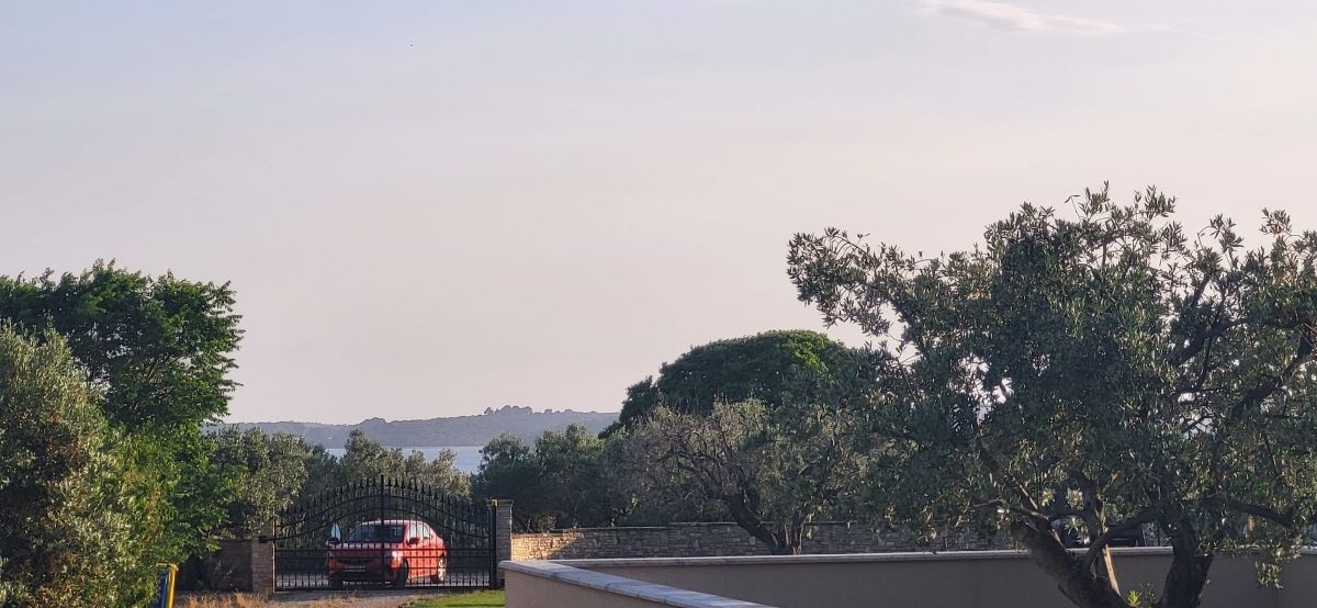 Nur etwas ausserhalb vom Zentrum von Fazana, im Grüngürtel ohne Nachbarn und mitten in Olivenplantagen – liegt mit einem unverbaubaren Blick aufs Meer & die Brioni-Inseln dieses Haus. Defacto ein Anwesen auf über 2.350m2, umgeben von einer typisch istrischen Steinmauer. Und in 800m ist man am Strand – im Ortszentrum in Restaurants, Cafes und Geschäften.