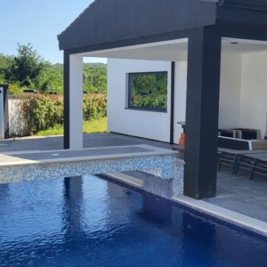 Das Herz sind die grossteils überdachten Terrassen vor und rund ums Haus, ein herrlicher Pool mit schönem Garten und Bäumen – was diese Immobilie wirklich einzigartig macht. Sommerküche mit Grill ist alles auch im Freien zu finden! Das komplette Ensemble ist in sich perfekt angelegt. Vom Einfahrtstor mit Platz für genügend Autos. Das Haus am höchsten Punkt erbaut, der Blick aufs Meer – in aller Ruhe und ohne Verkehrslärm!