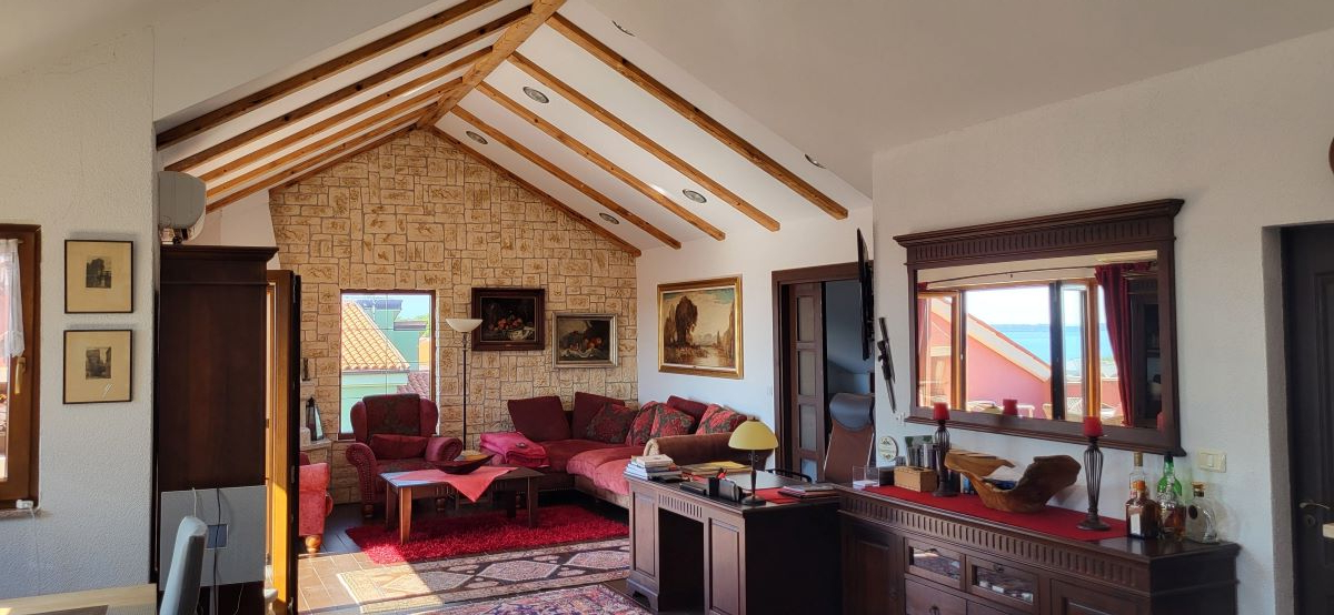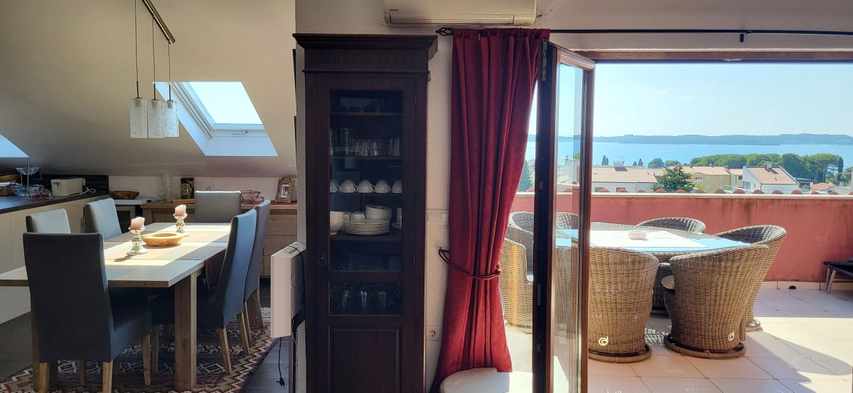 Highlights sind die beiden Penthouse-Apartments – zwei unabhängige Wohneinheiten der Luxusklasse mit gesamt über 300m2. Mit perfektem Interieur, mit perfekter Ausstattung bis hin zum privaten Whirlpool. Innenarchitektur nach Mass. Herausragender Meerblick und auf die Inselwelt von Brijuni – von Pula bis fast nach Rovinj.