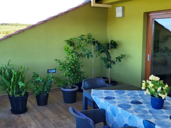 Auf dem Grundstück stehen aktuell ca. 20 Olivenbäume und etliche weitere Obstbäume, sowie ein privater Gemüsegarten. Der Rasen bzw das grösste Areal verfügt über ein unterirdisches Bewässerungssystem mit eigenem Brunnen. Ein Teil des Grundstücks verfügt auch über einen grünen Heckenzaun als Sichtschutz, um die Privatsphäre zu gewährleisten. Hinter dem Haus: grosser überdachter Grillplatz / Sommerküche – ideal für alle Feste & Partys!