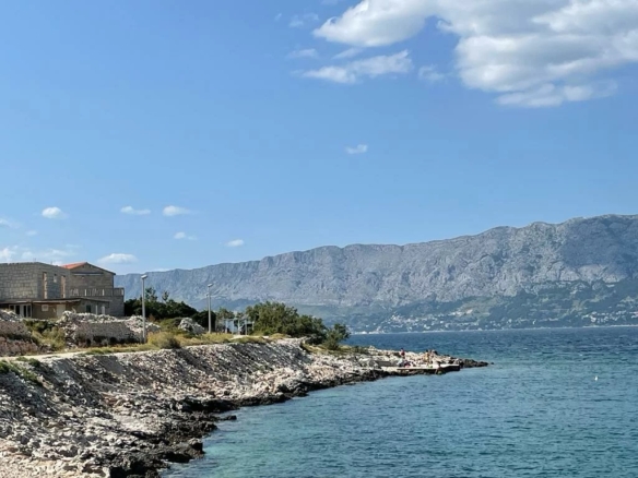 Das Grundstück ist in einer traumhaften Bucht an der Nordküste der Insel Brac gelegen mit Blick aufs Meer und das Festland, in der Ortschaft Povlja. So gut wie direkt am Strand gelegen, eine kleine Strasse verläuft vor dem Grundstück.