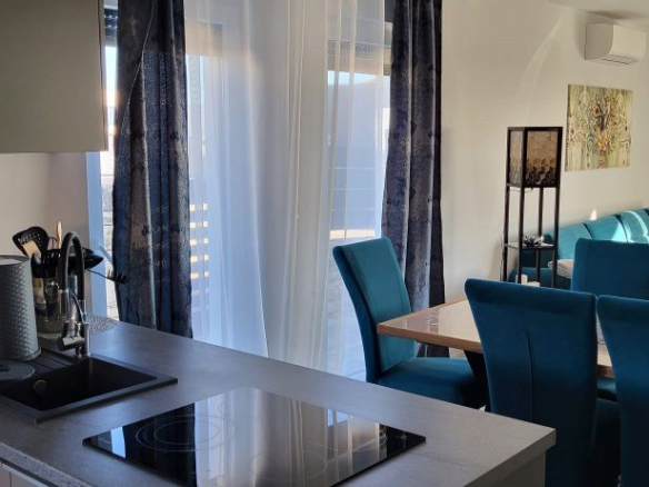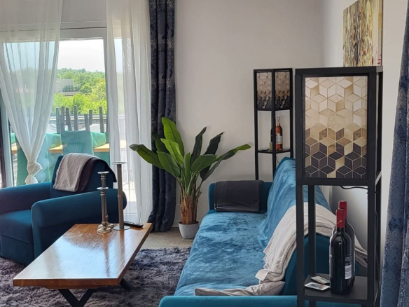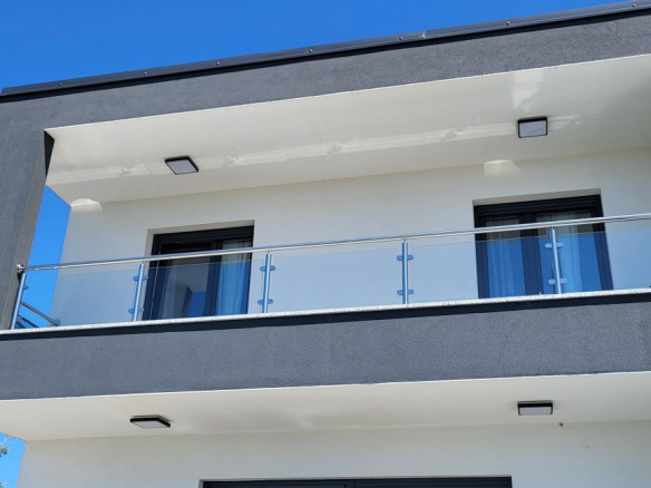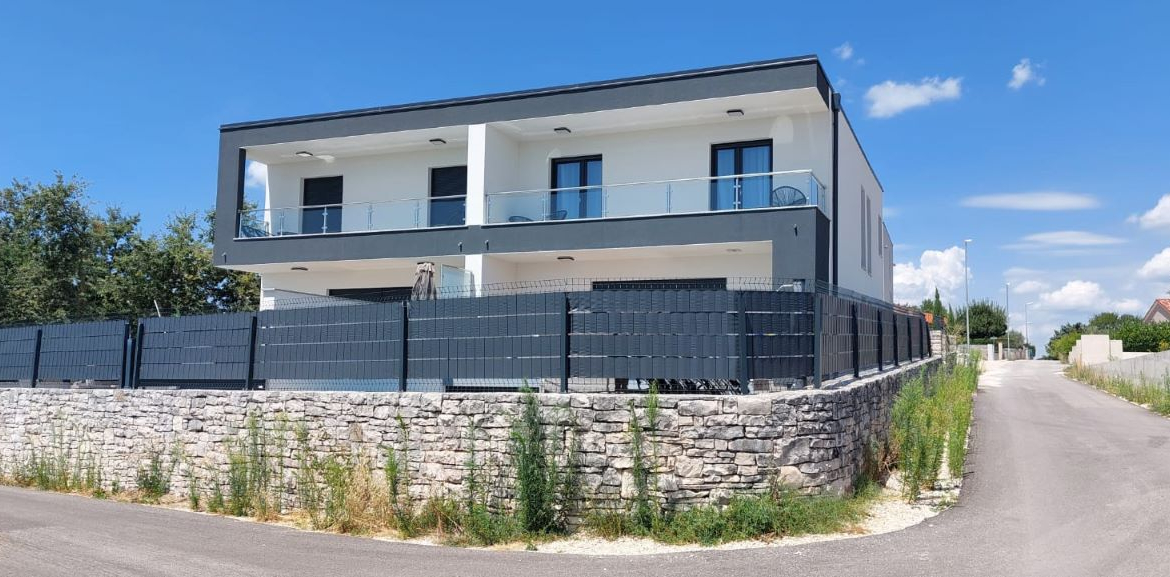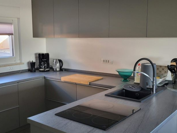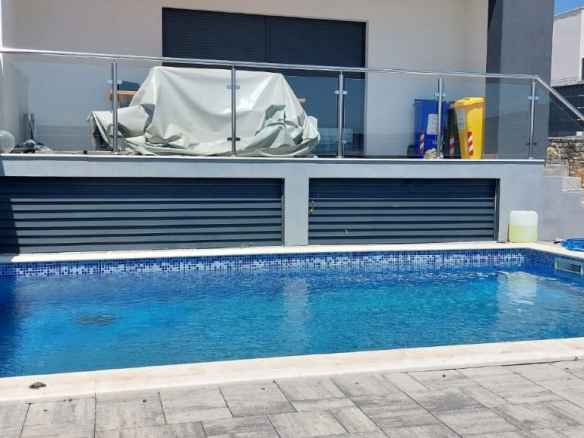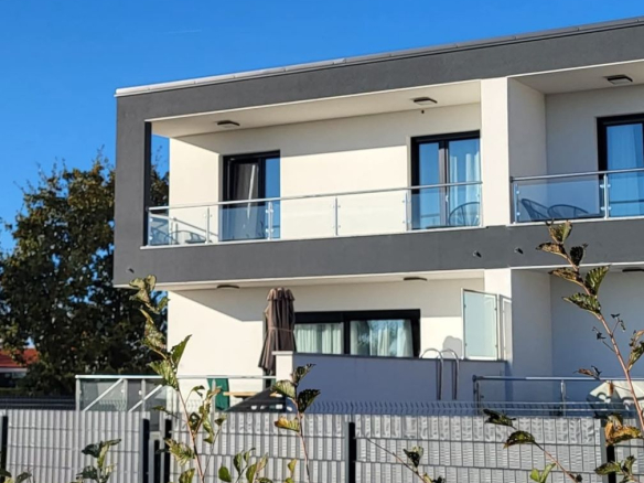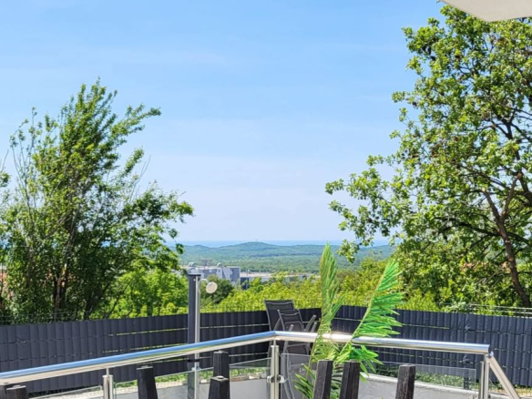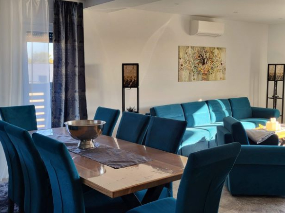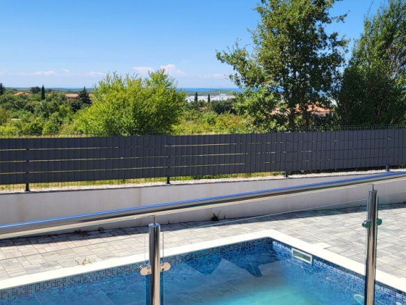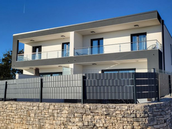 Klasse Haus mit zwei Doppelhaushälften – das neu gebaut und eingerichtet wurde. Die Einrichtung kommt nicht vom Möbelhaus, alles wurde hier perfekt in Massarbeit gemacht. Luxus pur, ein Wohnfeeling vom Feinsten! Und der ferne Meerblick in Richtung Rovinj, ein herrlicher Anblick, hier den Sonnenuntergang zu geniessen.