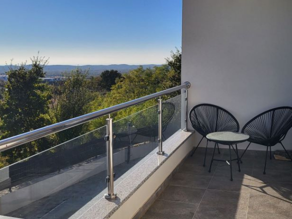 Im Obergeschoss – drei Schlafzimmer samt Bädern vom Feinsten, zwei davon mit Zugang auf den Balkon – mit Fernblick aufs Meer und in die grüne Landschaft Istriens.
