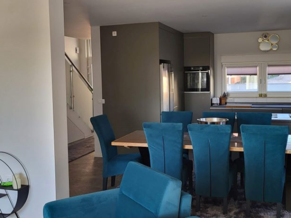Das Haus selbst besticht nebst moderner Architektur wenn man reinkommt mit dem grossen Wohnzimmer / Esszimmer und mit absolut top ausgestatteter Küche – wo es auf die überdachte Terrasse zum Pool geht. Im Untergeschoss befinden sich noch ein Bad, Technikraum und Stauraum.