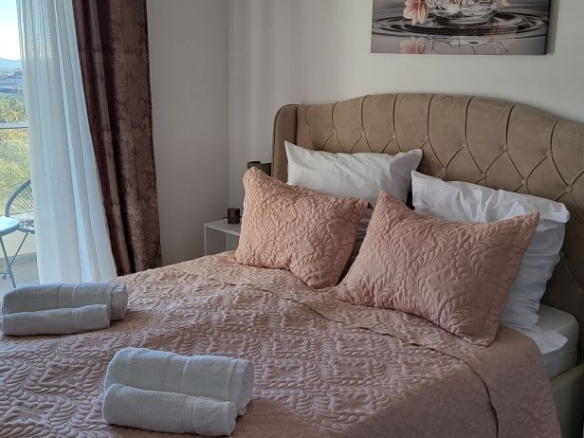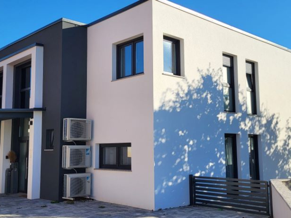 Neubau-Doppelhaus mit Pool & Meerblick – 160m2 Wohntraum je Haushälfte – gesamt also 320m2 Wohnfläche. Mit schönem fernen Meerblick – je 3 Schlafzimmer – Fussbodenheizung & je 5 Klimaanlagen! Voll möbliert!