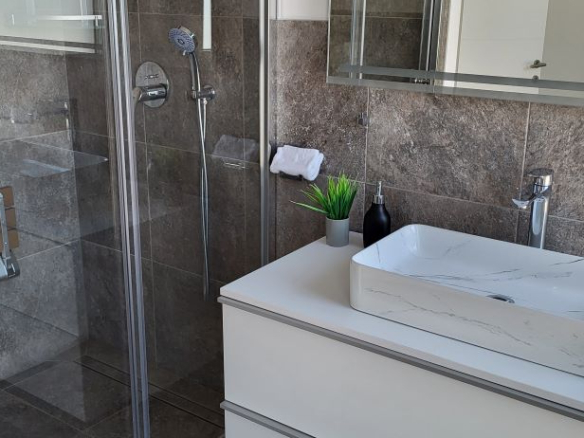 Zum modernen Baustil gehört die beste Technik, sowie edle Ausstattung mit Keramik und Marmor, Fussbodenheizung & je 5 Klimaanlagen. Das Haus wird komplett ausgestattet und vollmöbliert verkauft, man kann hier prompt einziehen!