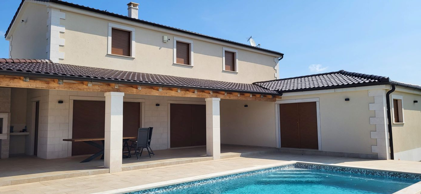 KANFANAR / ROVINJ RIVIERA – Doppelhaus – 2 x 160m2 Wfl, 2 Pools, ferner Meerblick