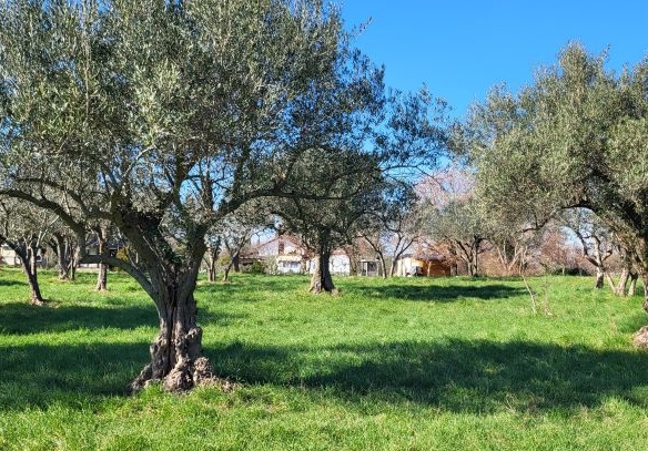 Die Hälfte des Grundstücks ist mit etwa 50 Olivenbäumen bepflanzt. Die Olivenbäume sind wunderschön und in hervorragendem Zustand, tragen natürlich noch alle Oliven, um eigenes Olivenöl zu machen. Defacto kann man die Bäume auch an Villenbesitzer verkaufen zur Gartengestaltung – für derart alte Bäume werden bis zu EUR 1.000.- und mehr pro Stück bezahlt! Die andere Hälfte des Grundstücks ist mit Wiese bewachsen – aktuell eine freie Fläche.