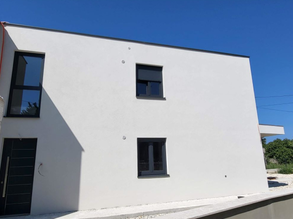 Das neue Gebäude mit den 2 Apartments befindet sich im Zentrum von Liznjan in sehr ruhiger Lage, und auch teils grüner Umgebung. Bei Geschäften, Cafes und Restaurants ist man zu Fuss in 2-3 Minuten, und zum Strand in Liznjan ist es gut 1km. Und – auch vom Garten aus hat man schon Blick aufs Meer!
