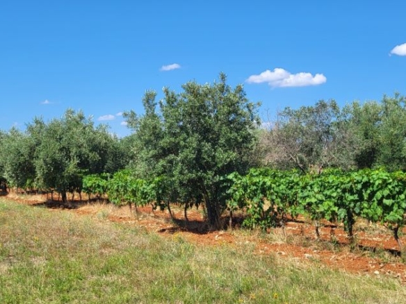 Grosses Grundstück mit 4.000m2 in Marcana im Südosten Istriens. Das Grundstück ist bis zum Nachbarhaus mit Wasser und Strom erschlossen. Rundum sind Agrarflächen – Weingärten und Olivenbäume.