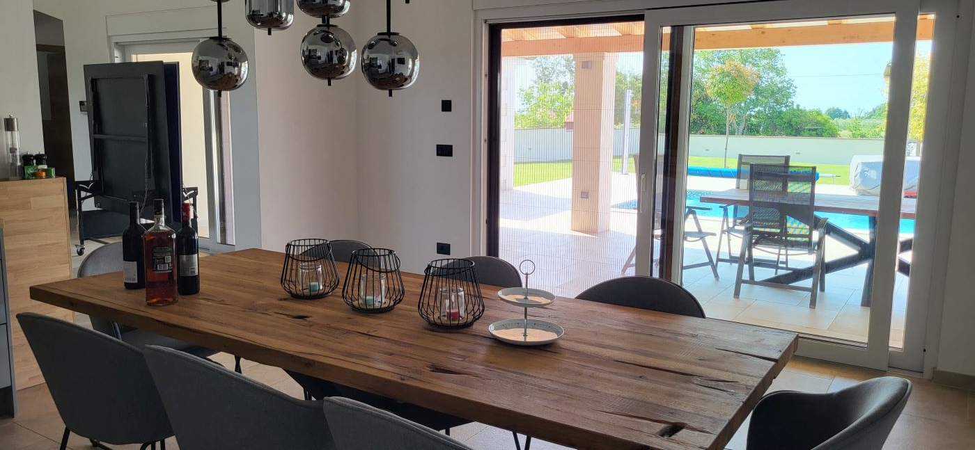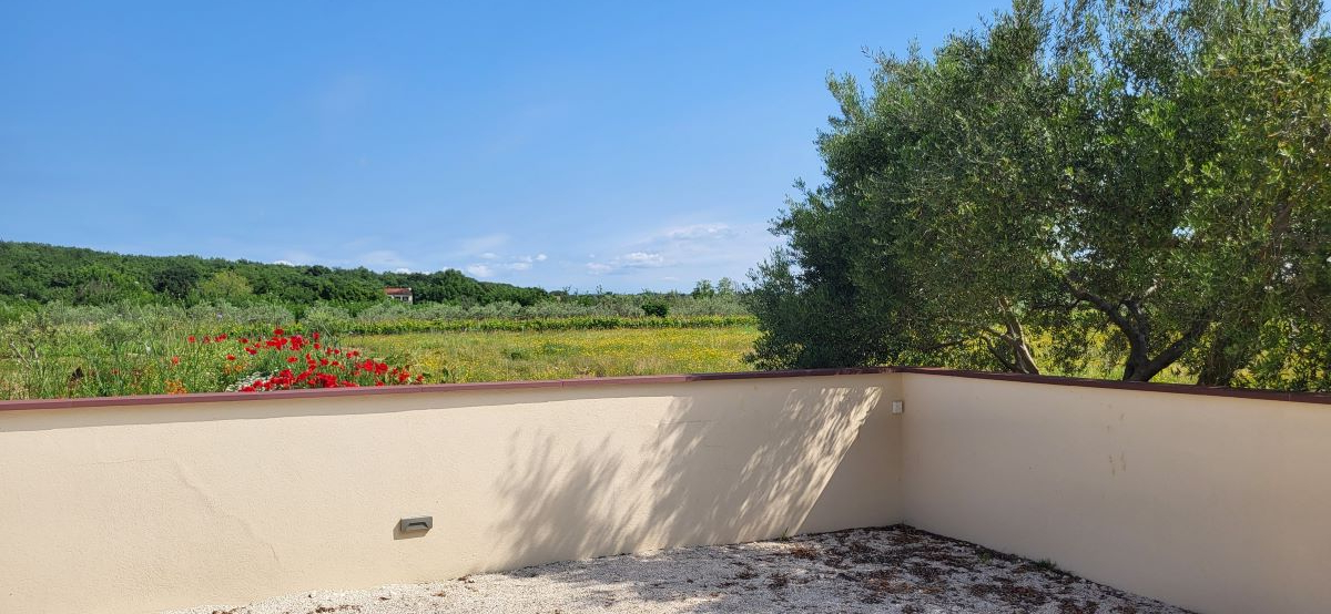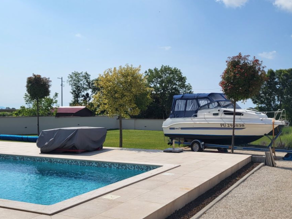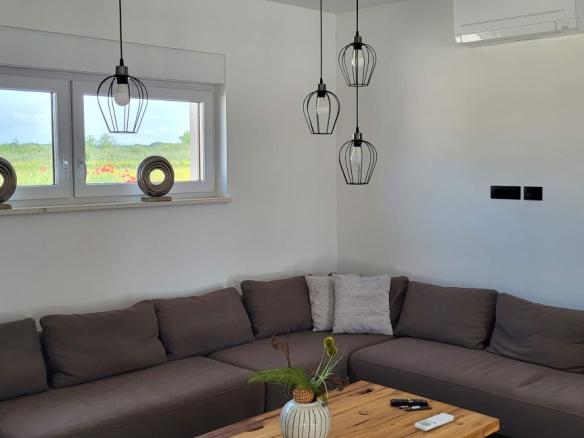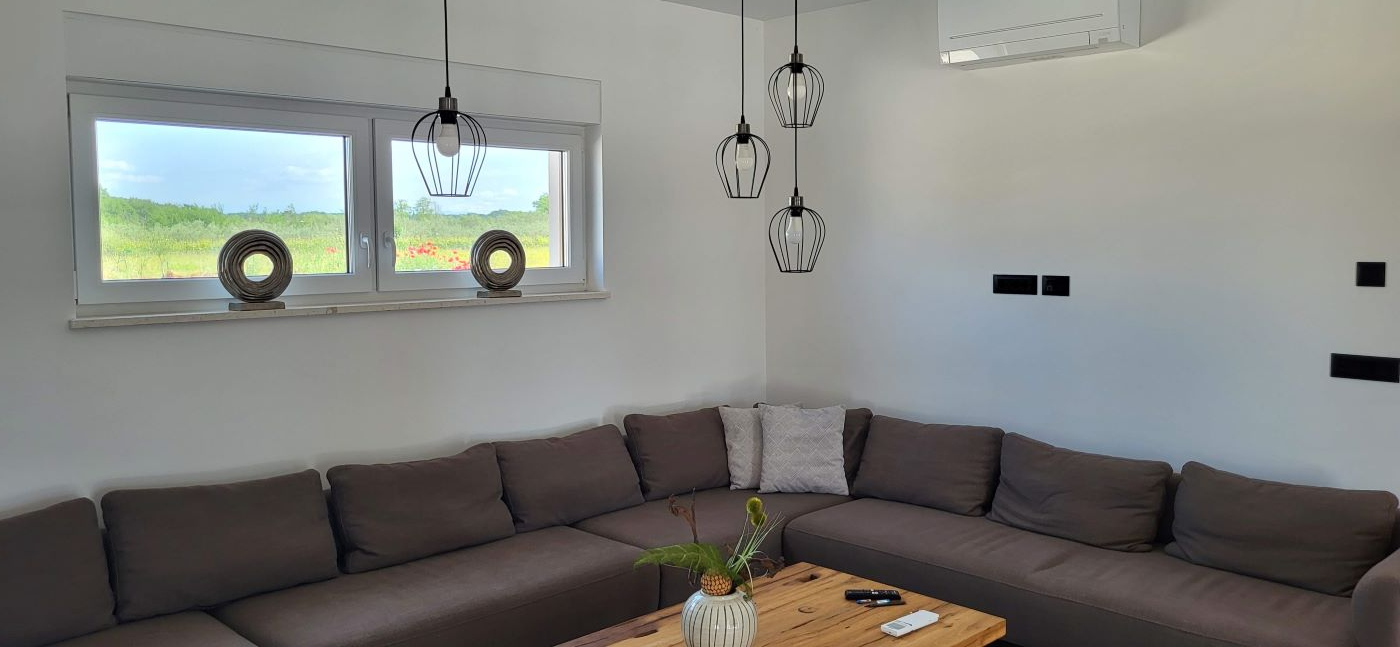 Dieses Haus, eben erst neu erbaut und voll eingerichtet, ist im Ort Marcana, nur wenige Kilometer von Pula entfernt. Fast mitten im Grünen gelegen – und auch zum Meer sind es nur wenige Kilometer, in Orte wie Medulin, Fazana – und auch an die traumhafte Südostküste Istriens. Hier ist Ruhe & Erholung garantiert, es gibt da keine Durchzugsstrasse.