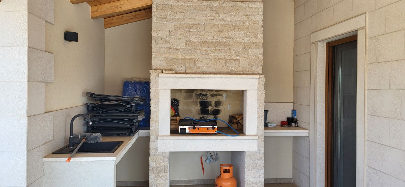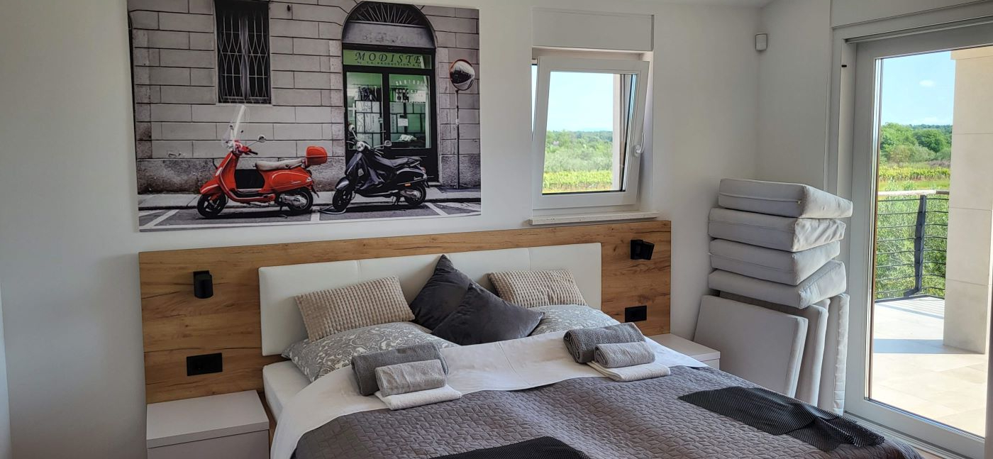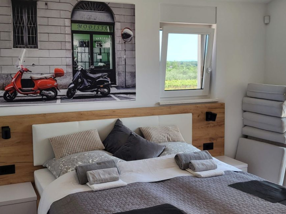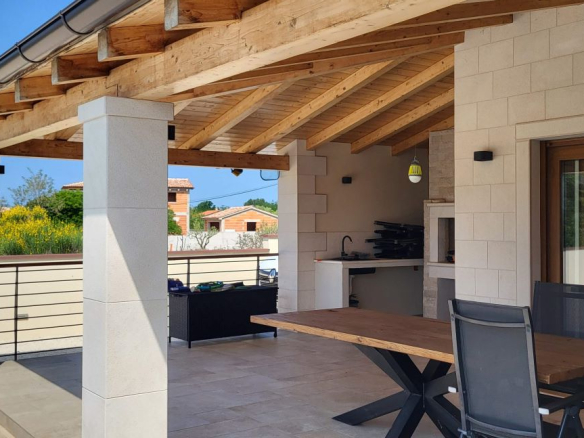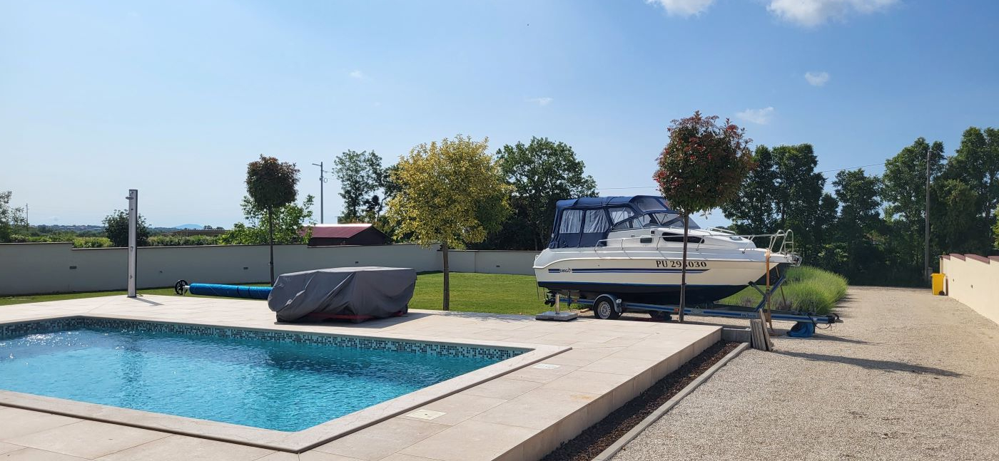 Dieses Haus, eben erst neu erbaut und voll eingerichtet, ist im Ort Marcana, nur wenige Kilometer von Pula entfernt. Fast mitten im Grünen gelegen – und auch zum Meer sind es nur wenige Kilometer, in Orte wie Medulin, Fazana – und auch an die traumhafte Südostküste Istriens. Hier ist Ruhe & Erholung garantiert, es gibt da keine Durchzugsstrasse.