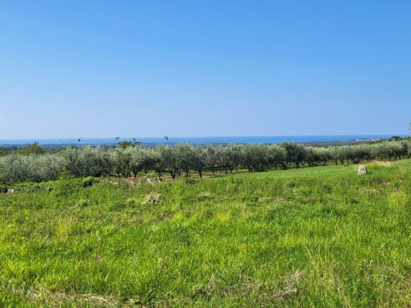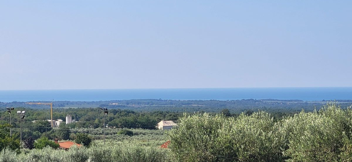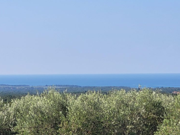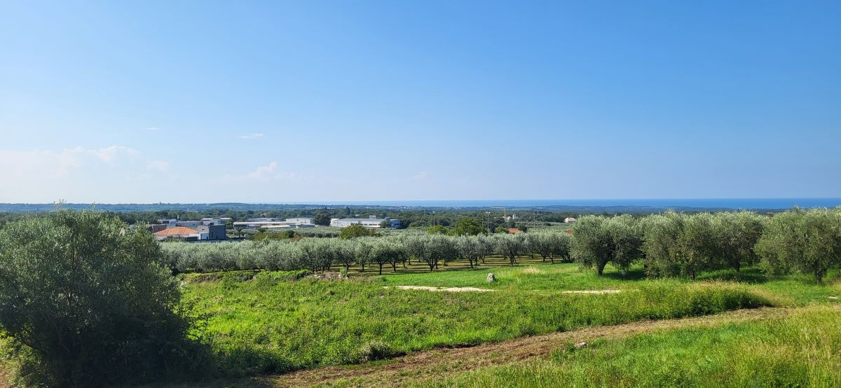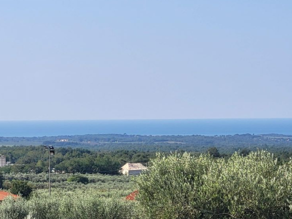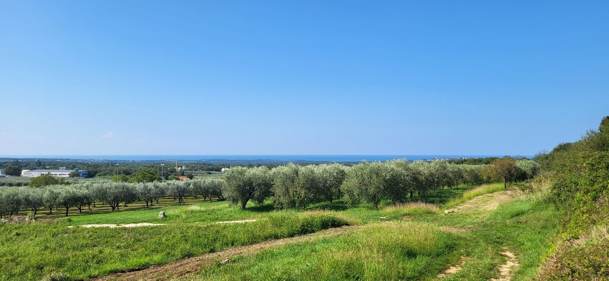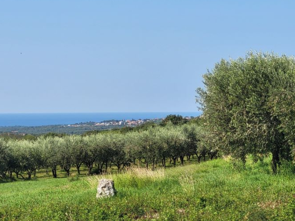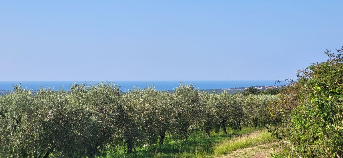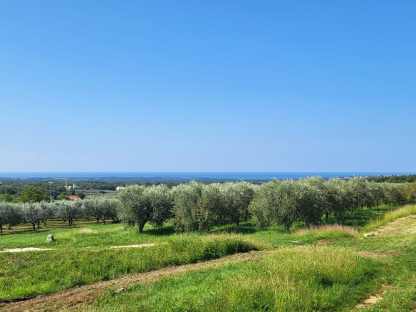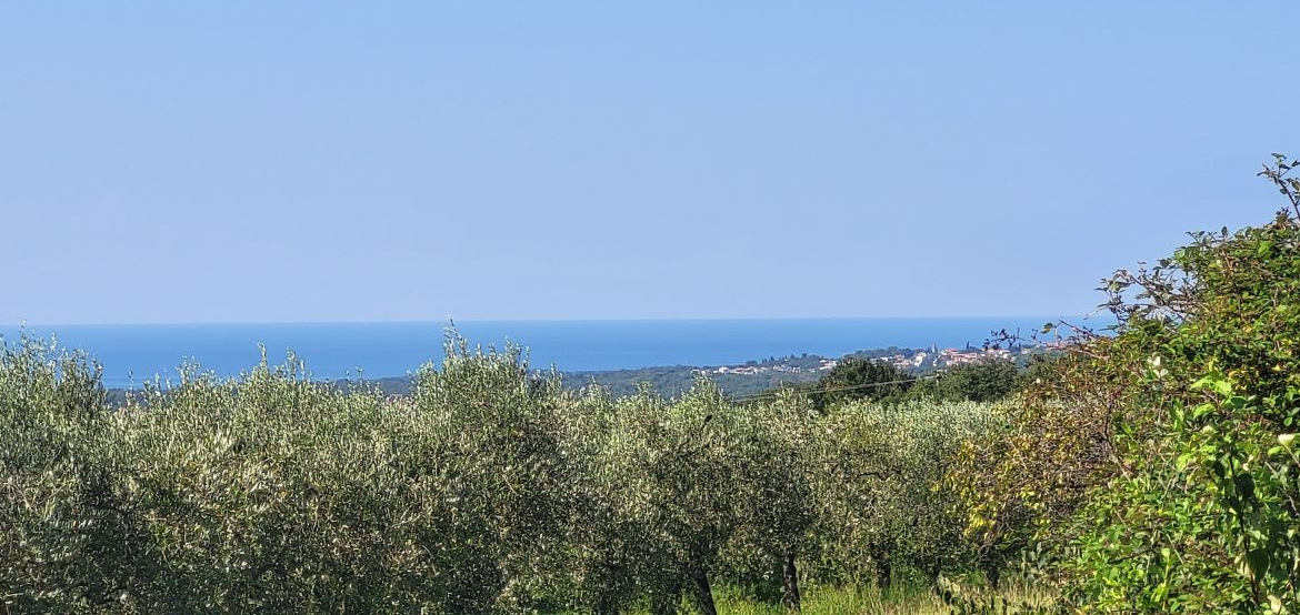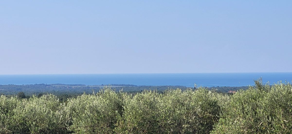 Drei Bauparzellen nebeneinander, leicht den Hang aufsteigend. Alle drei Grundstücke sind mit unverbaubarem Meerblick. Über die Olivenplantagen (Agrargrund) nebenan hinweg – ein Fernblick von Porec bis nach Novigrad auf das Meer. Und was zur Traumkulisse dazukommt: die schönen Olivenplantagen nebenan – hier wohnt man dann defacto im Olivenhain, komplett ruhig! Das garantiert auch den dauerhaften Meerblick, weil dies daneben kein Baugrund ist!