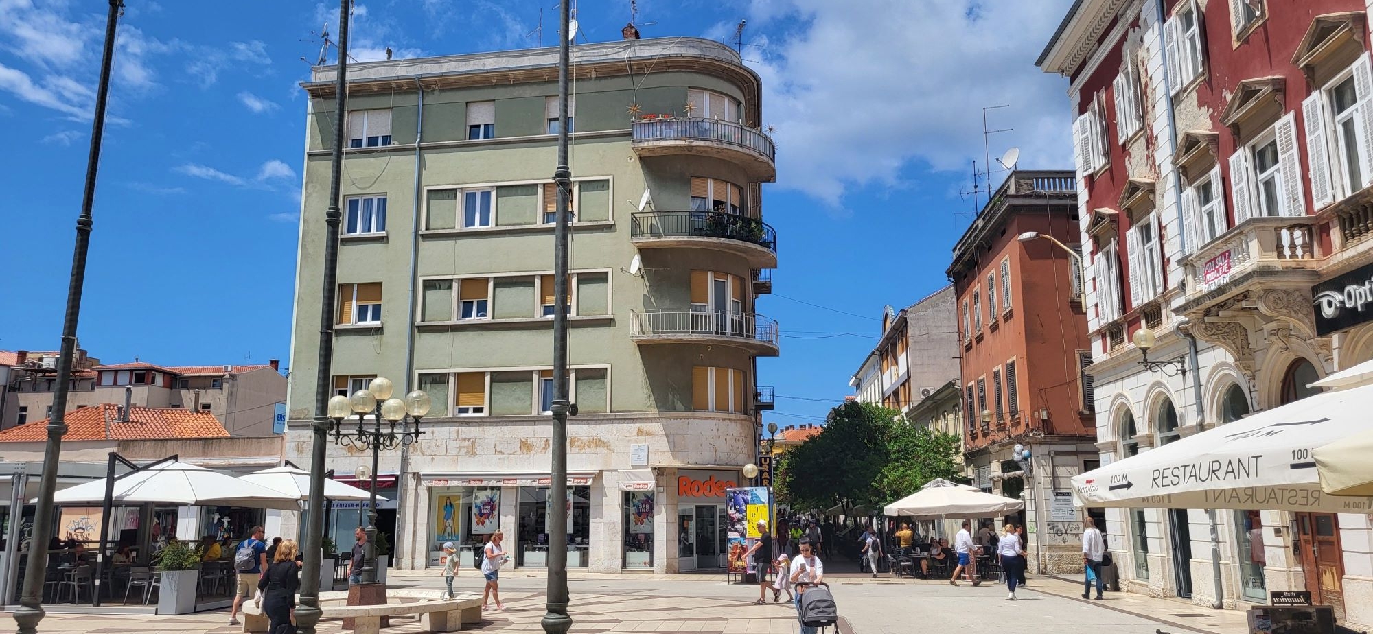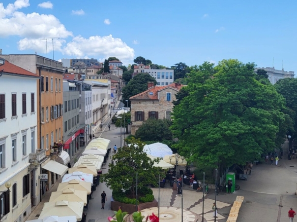 Das Apartment befindet sich im dritten Stock eines schön renovierten Gebäudes, das Anfang des 20. Jahrhunderts errichtet wurde. Und zwar direkt im Zentrum – gleich beim Gemüsemarkt / Fisch- & Fleischmarkt. Von den Fenstern und vom Balkon blickt man über die Altstadt und auf den Markt – ein imposanter Ausblick. Geschäfte, Cafes, Restaurants – das alles hat man im unmittelbaren Umfeld!