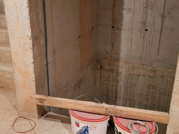 Im Haus ist punkto Elektrik- und Wasserinstallation schon vieles vorhanden und installiert. Ebenso ist ein Aufzug im Haus vorgesehen. Rechtlich gibt es für den Bau alle notwendigen Genehmigungen