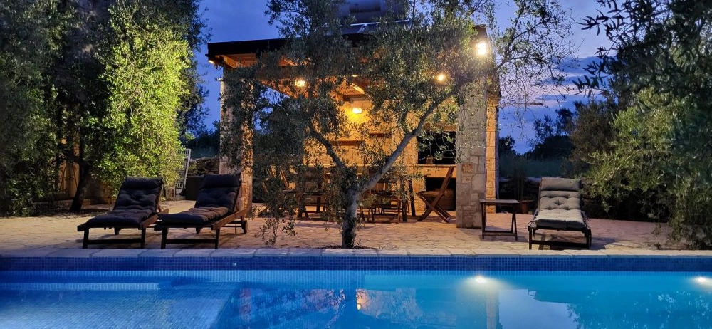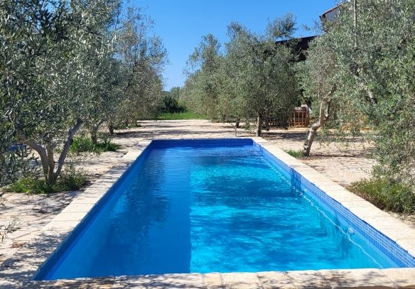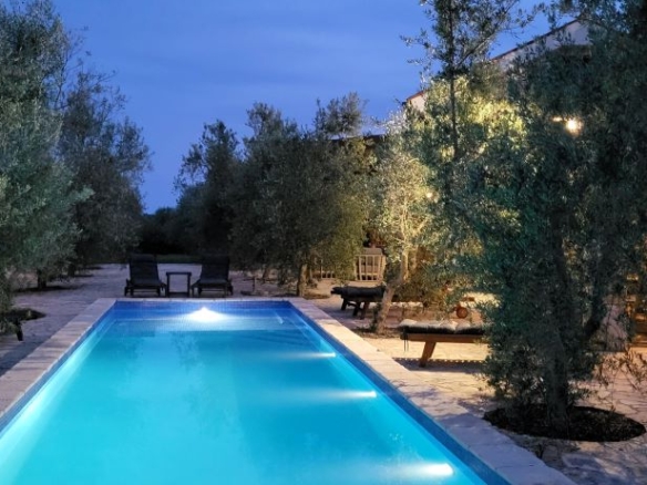Das Areal von rund 3,5ha (35.000m2) liegt komplett abgeschieden und Privat. Zwei Wohnhäuser, ein eigenes Steinhaus als BBQ-Haus / Grill mit Sommerküche, direkt daneben ein grosser Pool mit über 200m2 Terrasse bieten feudales Luxusambiente – direkt im Olivenhain.