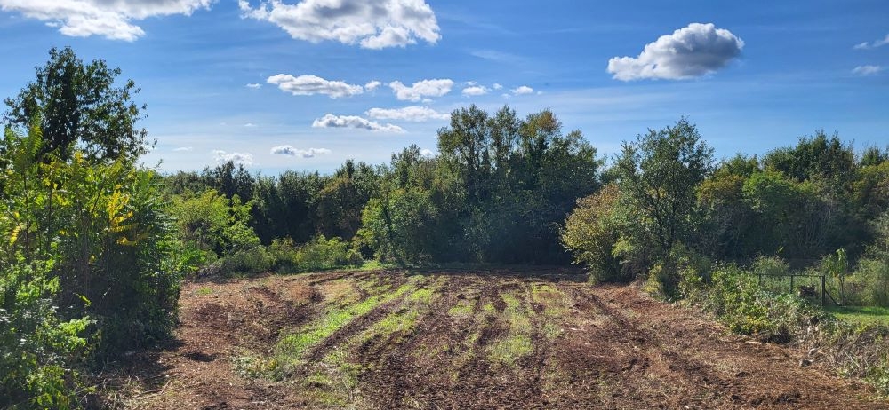 Das Grundstück ist fast in Alleinlage, Wasser und Strom gibt es hier, und wurde vom Eigentümer eben gerodet.