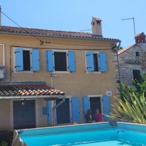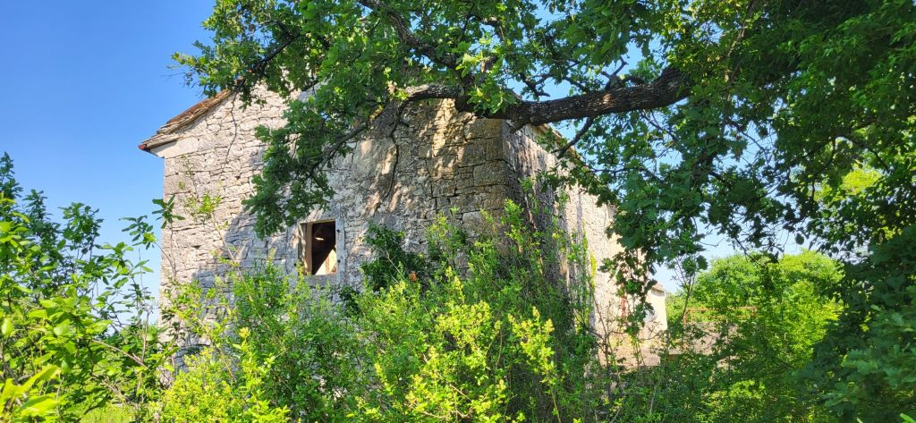 Beim gegenständlichen Objekt handelt es sich um ein solches STANCIJA – heute in Istrien bereits eine Rarität, weil viele solcher Häuser in den letzten Jahren aufgekauft wurden. Es ist ein grosses Hauptgebäude in zwei Hälften unterteilt – das bis vor rund 20 Jahren noch bewohnt war. Und ein Nebengebäude – schönes Steinhaus – das aktuell eine Ruine ist. Der Vorteil hier ist: Stromanschloss ist vorhanden, Wasseranschluss ist nur 100m entfernt. Das Areal ist sehr flach, leicht wellig, die Häuser auf dem höchsten Punkt und hat man sogar fernen Meerblick vom Obergeschoss in Richtung Westküste von Istrien. Vieles vom kultivierten Land ist mittlerweile zum Buschland geworden.