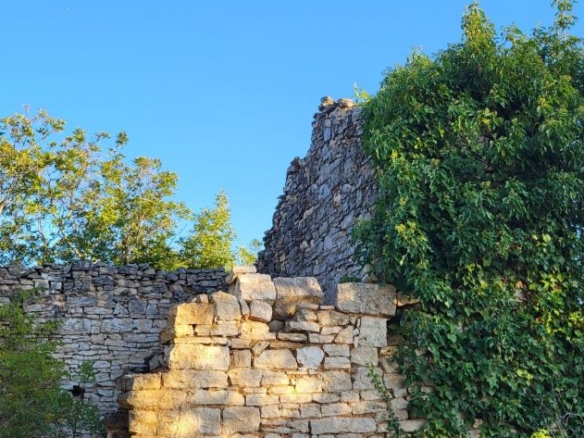 Da das gesamte Land in etliche Parzellen unterteilt ist, gibt es am gesamten Areal viele Steinmauern / Trockenmauern aus Stein. In früherer Zeit wurden diese Steinmauern von den Eigentümern entlang der Grundgrenzen zusammengetragen und aufgebaut. Man hat hier also sehr viel nutzbares Steinmaterial, wenn man architektonisch im klassisch istrischen Stil weitere Häuser bauen will bzw. das Areal entsprechend gestalten will.